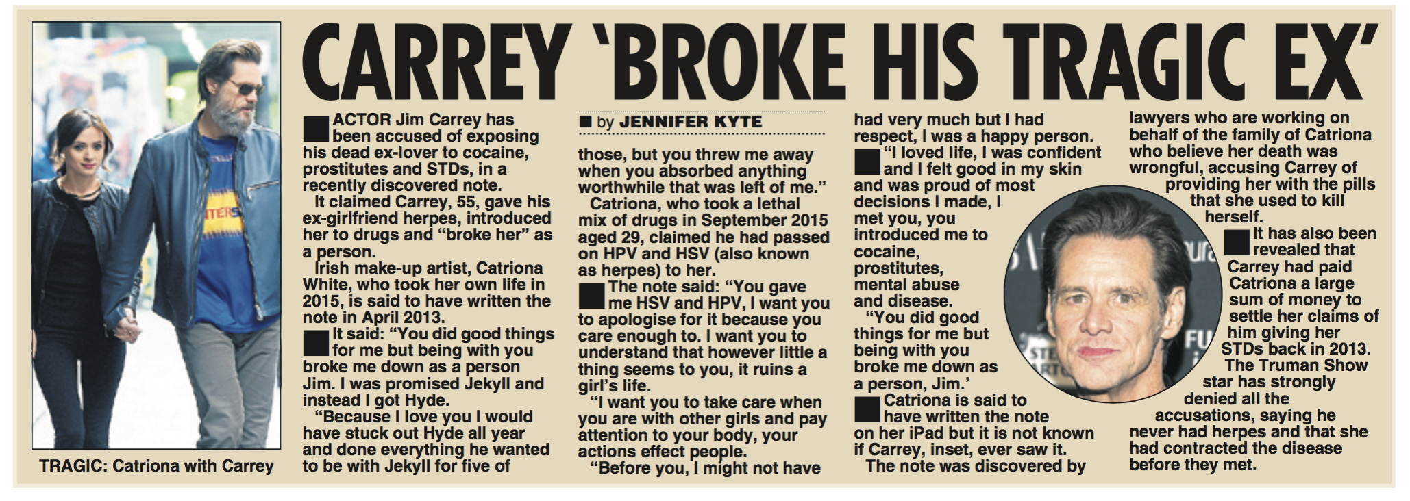 Carrey ‘broke tragic ex’ October 2, 2017September 22, 2023 Share this: Click to share on Facebook (Opens in new window) Facebook Click to share on X (Opens in new window) X Like Loading...