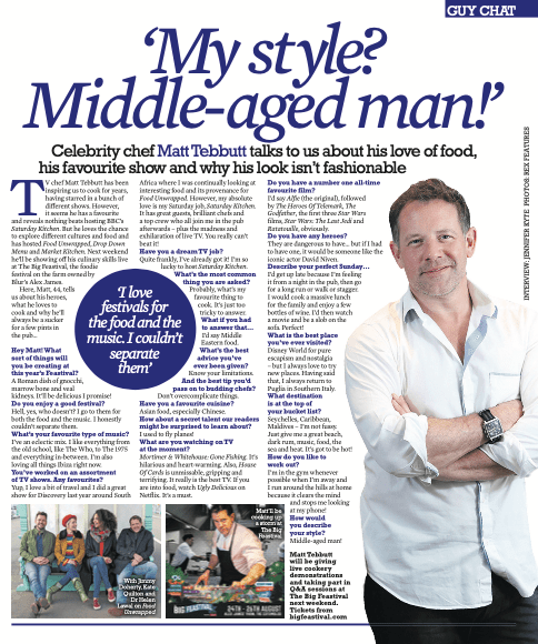 Matt Tebbutt: ‘My style? Middle-aged man!’ August 19, 2018September 22, 2023 Share this: Click to share on Facebook (Opens in new window) Facebook Click to share on X (Opens in new window) X Like Loading...