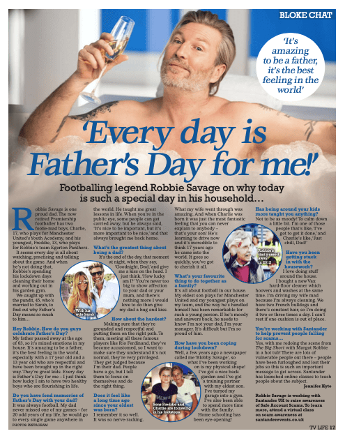 Robbie Savage: ‘Every day is Father’s Day for me!’ June 21, 2020September 22, 2023 Share this: Click to share on Facebook (Opens in new window) Facebook Click to share on X (Opens in new window) X Like Loading...