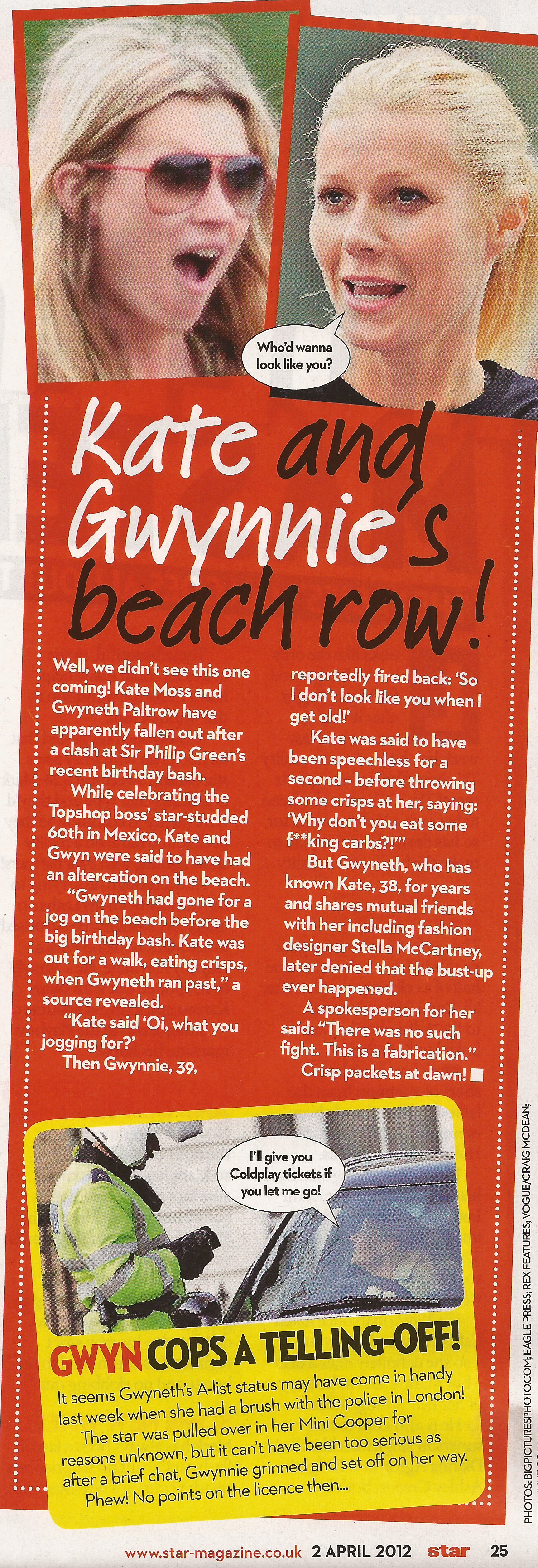 Kate and Gwynnie’s beach row!